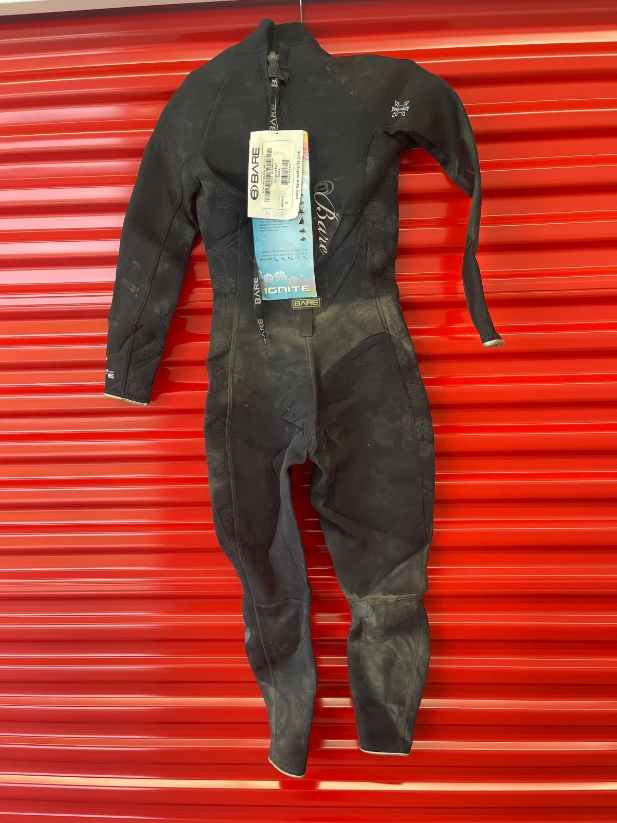 You are purchasing one new, with defects, Bare Ignite women’s wetsuit, size 8, as shown in the listing. This is a consumer apparel item being resold. The defects are cosmetic and related to storage, not to the garment’s construction or integrity as a new item. We are not the manufacturer.