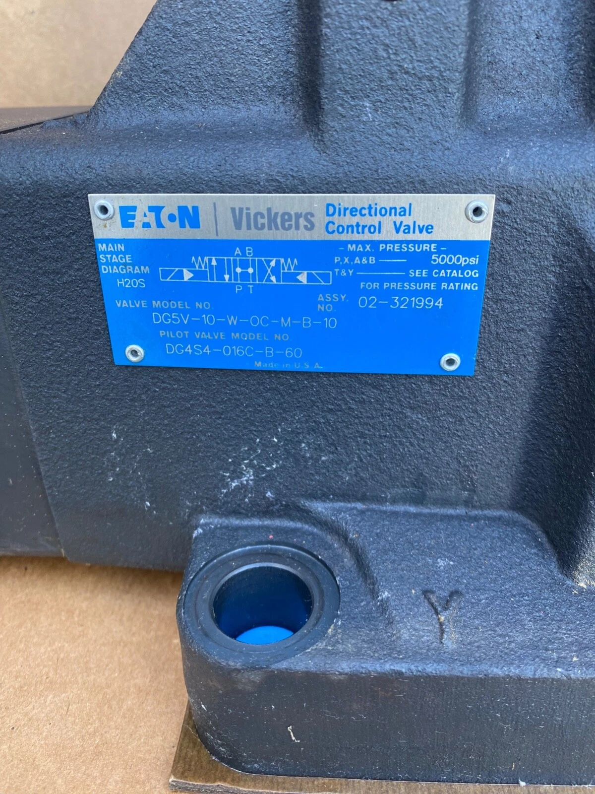 This listing is for an Eaton Vickers Directional Control Valve, part numbers DG5V-10-W-0C-M-B-10 and DG454-016C-B-60, designed for precise hydraulic flow control in industrial and mobile machinery applications.