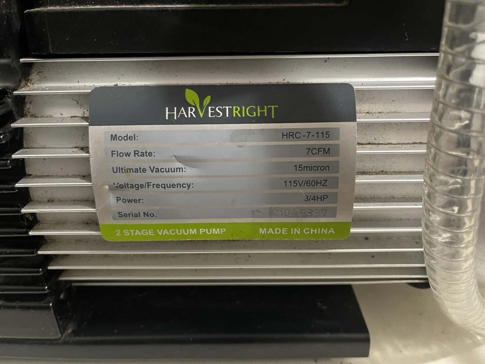 You are purchasing the exact used Harvest Right HRC-7-115 vacuum pump shown in the listing. This is a piece of pre-owned equipment being resold. It is not new, and we are not the manufacturer.