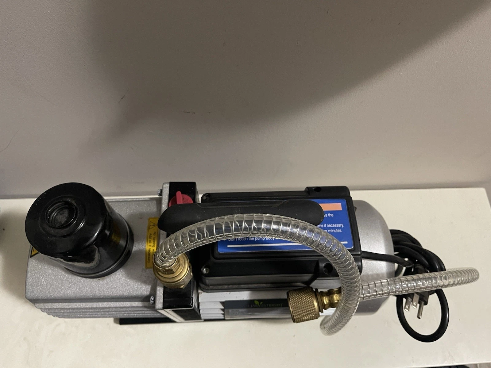 This listing is for a used Harvest Right vacuum pump, model HRC-7-115. This pump is specifically designed for use with Harvest Right freeze drying machines to create the necessary vacuum environment for the freeze-drying process.