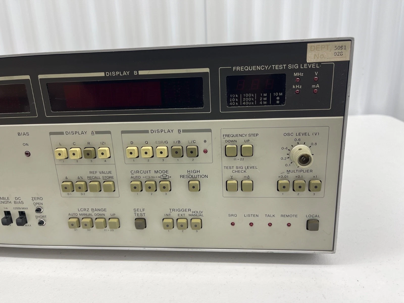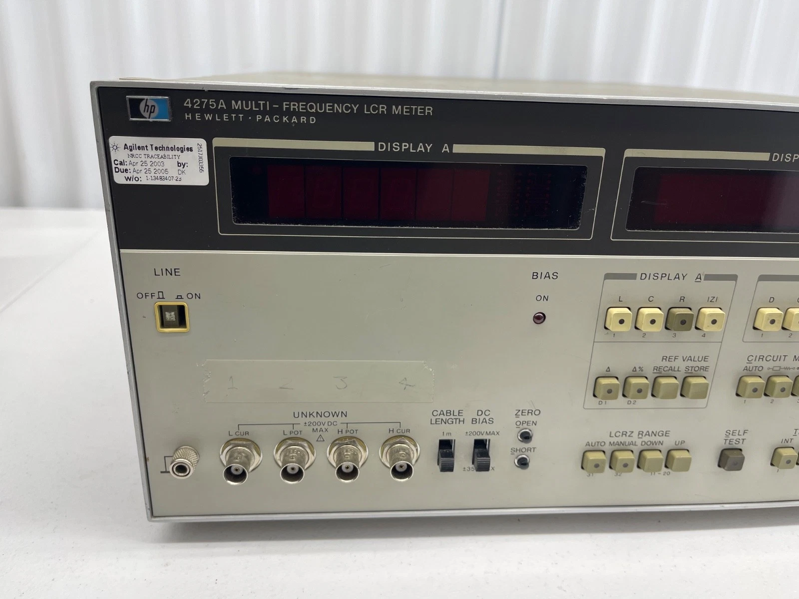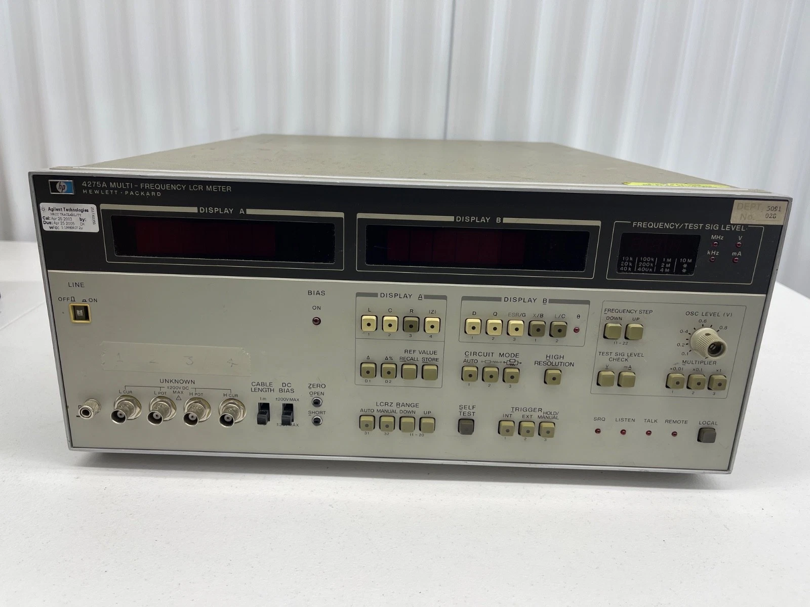 This listing is for an HP / Hewlett Packard / Agilent / Keysight 4275A Multi-Frequency LCR Meter, a precision instrument used to measure inductance (L), capacitance (C), and resistance (R) across multiple frequencies. It is ideal for laboratory, research, and electronic testing applications.