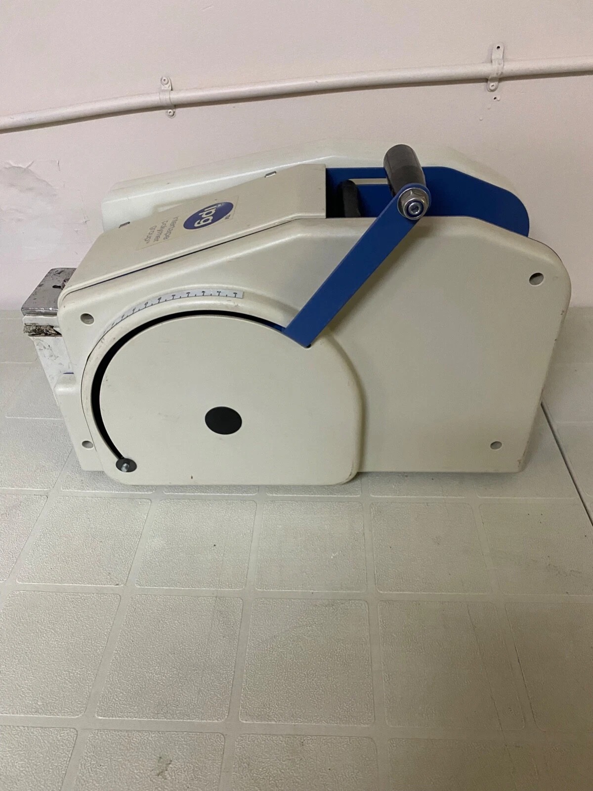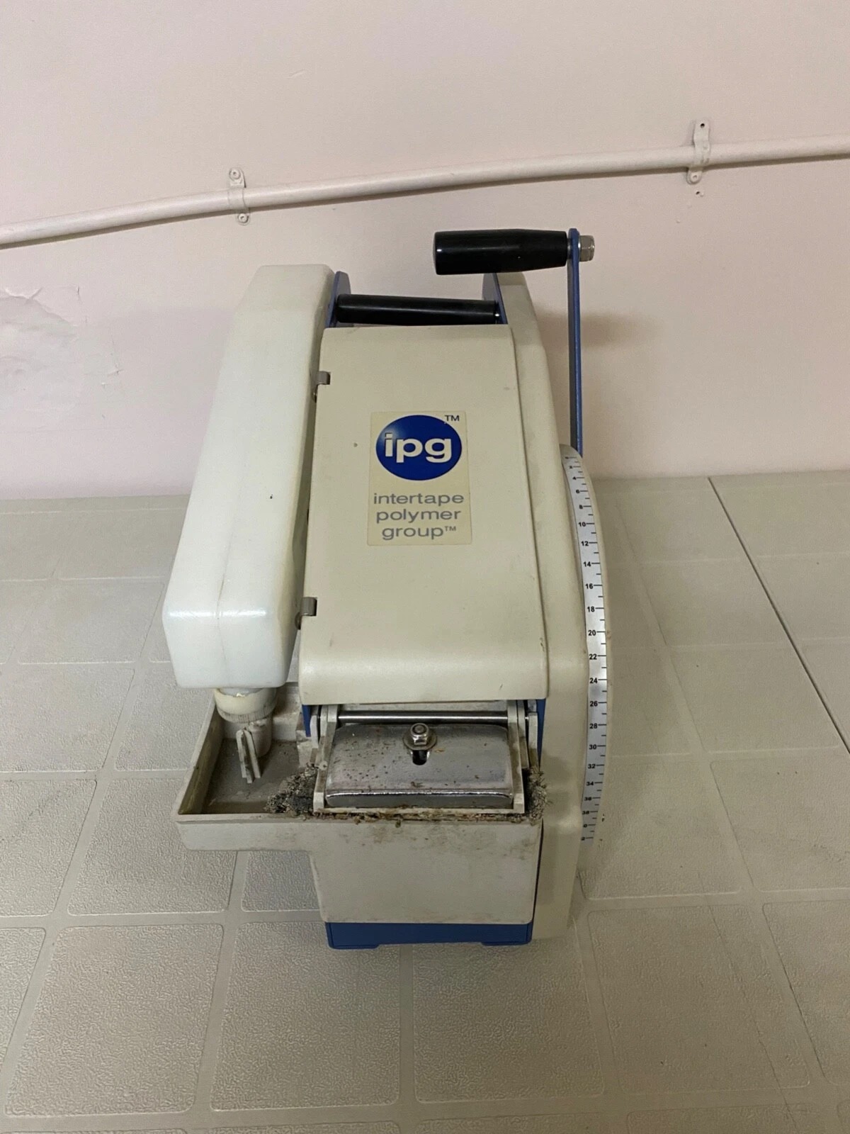 This listing is for a used Intertape Polymer Group (ipg) TWA1000M manual paper tape machine. This device is designed to dispense and moisten water-activated kraft paper tape for secure sealing of cardboard boxes in shipping and packaging applications.