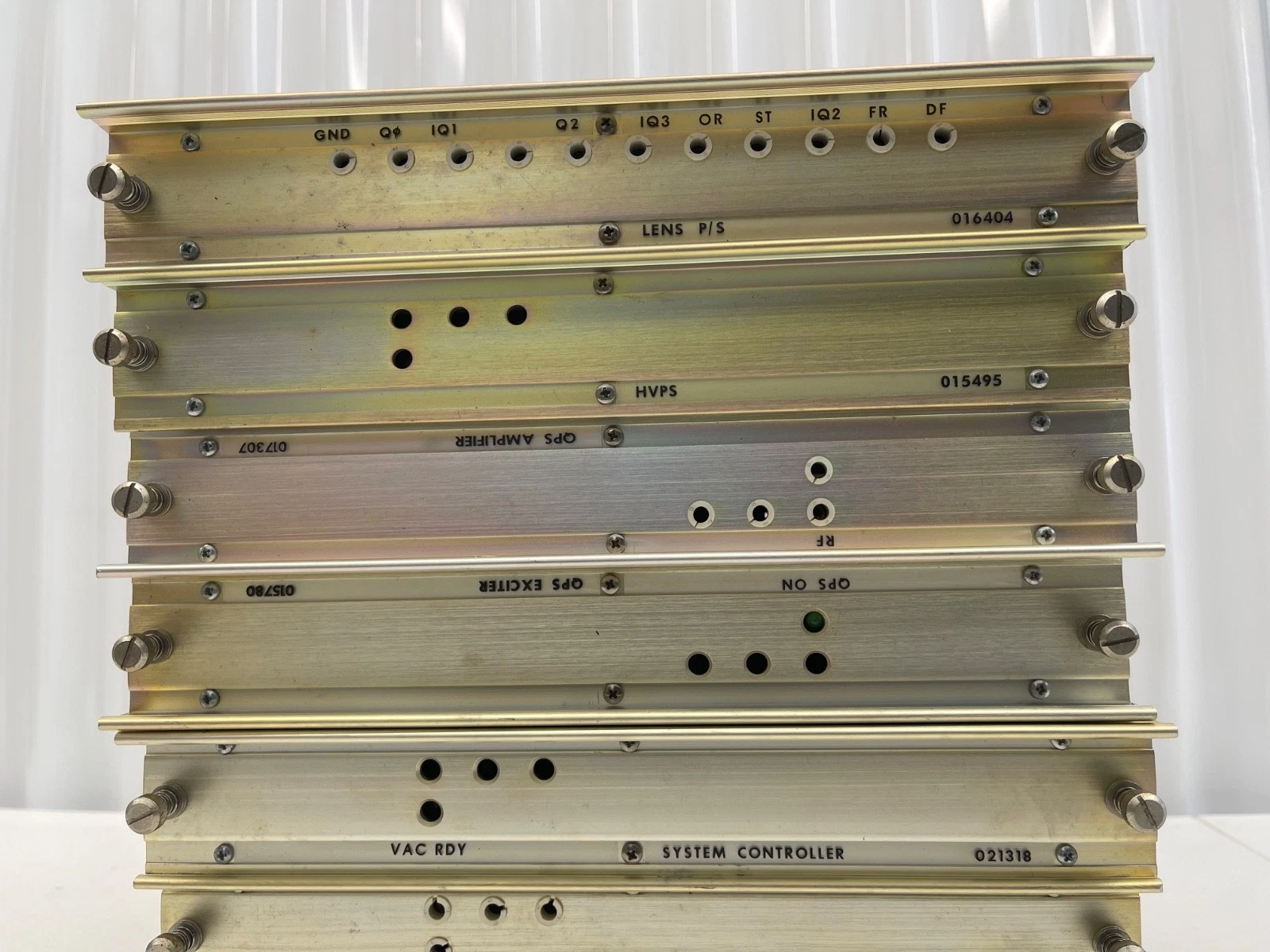 This listing is for a lot of 7 AB Sciex System Controller Lens QPS Exciter Amplifier HVPS DACS Modules. These are precision modules used in mass spectrometry and analytical instruments, designed to support system control, signal amplification, and high-voltage operation.
