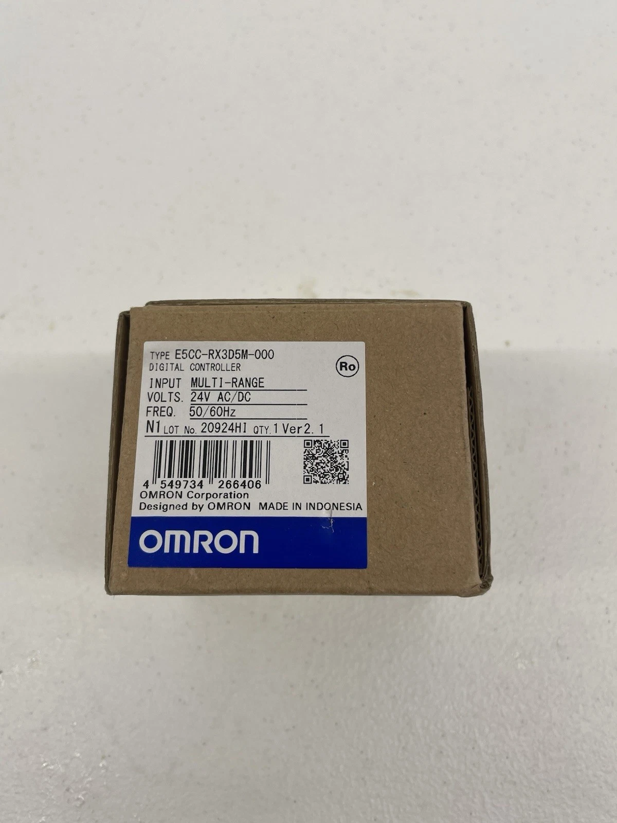 This listing is for a new Omron digital temperature controller, model E5CC-RX3D5M-000. This unit is an industrial automation device used for precise temperature control in various processes and equipment.