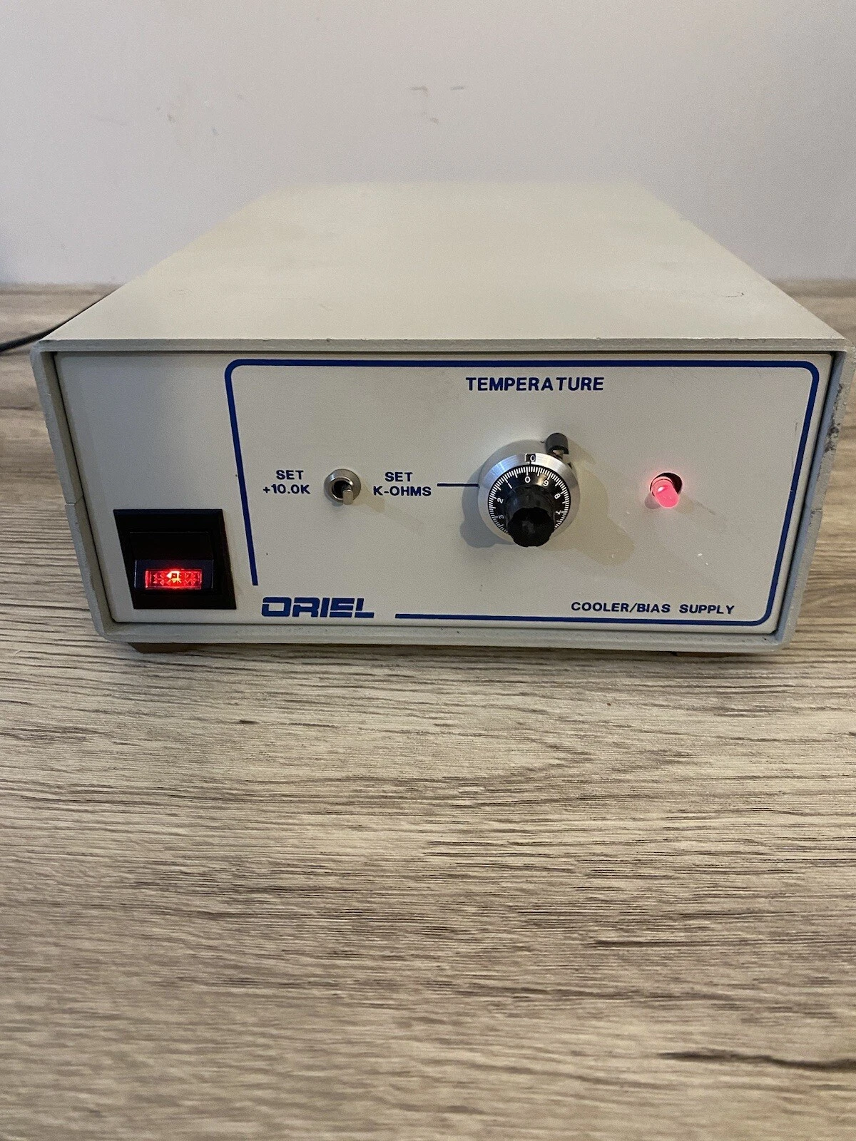 This listing is for a used Oriel model 70708 cooler bias supply power supply. This unit is a piece of laboratory equipment designed to provide power and bias voltage for devices like coolers or detectors in optical or scientific setups.