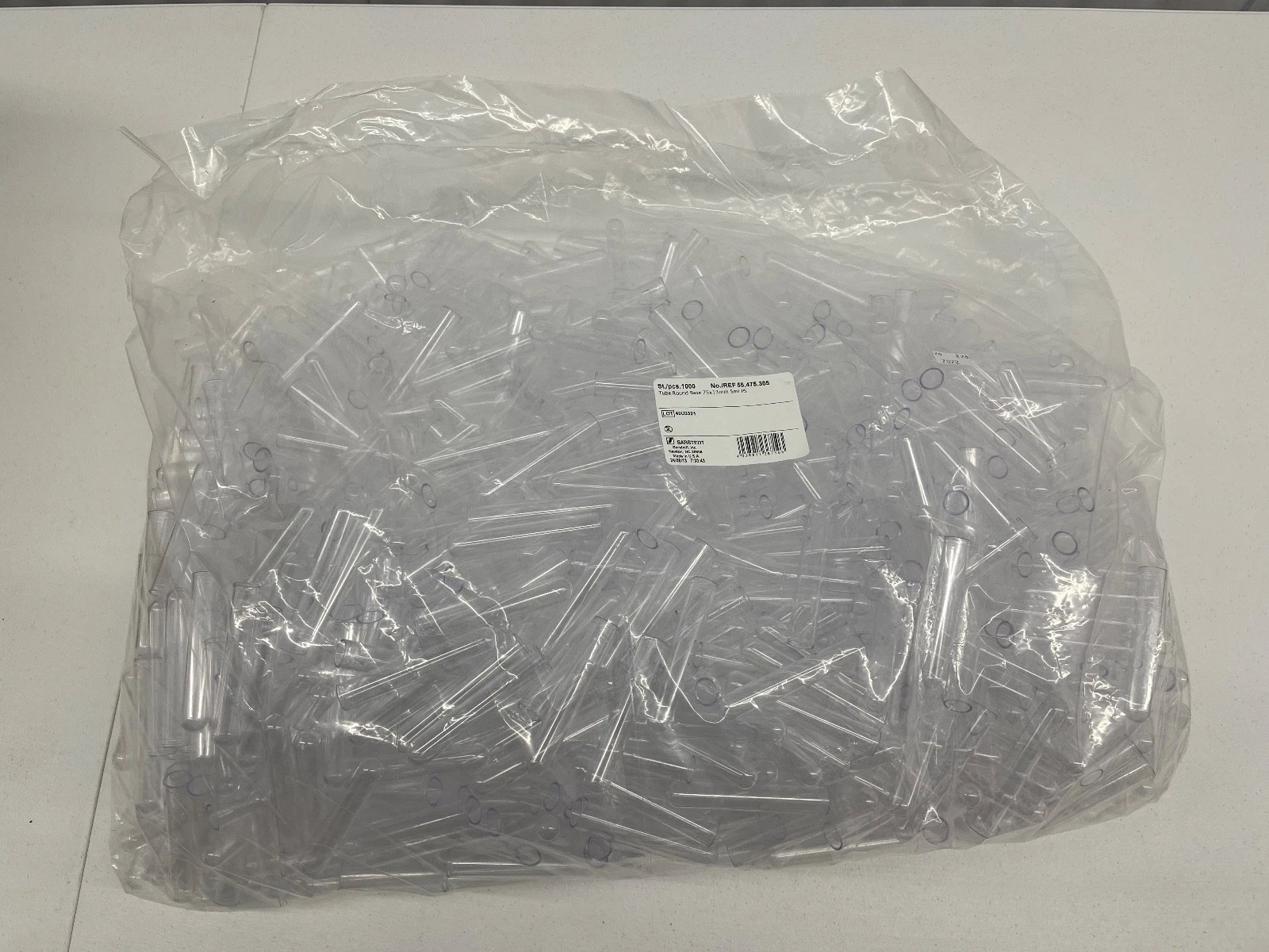You are purchasing one new, sealed pack containing 1000 Sarstedt 5ml polystyrene tubes as shown in the listing. These are laboratory consumables being resold. We are not the manufacturer.