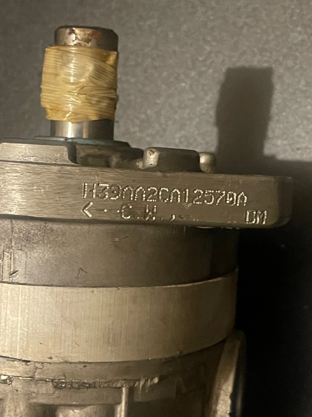 This listing is for a Parker hydraulic gear pump, model H39AA2C. This unit is designed for use in hydraulic systems to generate fluid flow.