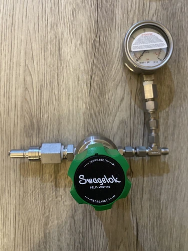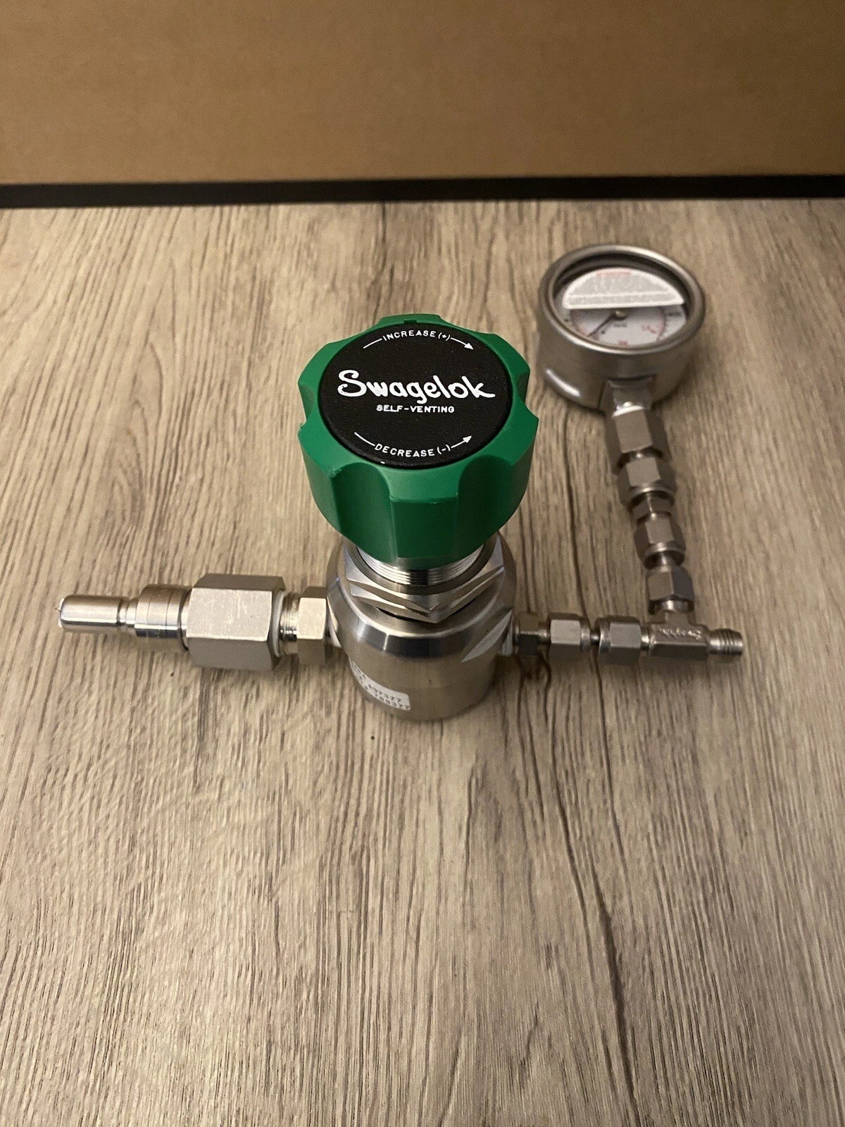 This listing is for a Swagelok general-purpose pressure regulator from the K Series. It includes a gauge and is designed for precise control of pressure in fluid or gas systems.
